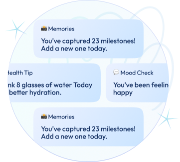 Partner Support: When activated, your partner receives notifications with insights into your wellbeing. They’ll learn specific ways to support you while also receiving guidance for their own experience. Our carefully designed communication bridge ensures you both feel heard, understood, and connected during this transformative time—creating a foundation of shared support that benefits your growing family.